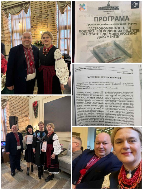 19 грудня 2024 року Державним архівом Хмельницької області з Хмельницькою обласною військовою адміністрацією та Департаментом інформаційної діяльності, культури, національностей та релігій Хмельницької обласної військової адміністрації викладачі коледжу Галина НИЗЕНКО та Олександр АТАМАНЧУК прийняли участь у Другому регіональному науково-практичному форумі „Гастрономічна історія Поділля: від родинних рецептів та нотаток – до мови архівних документів”. Саме в ОПП "Виробництво харчової продукції" 2024 року внесена вибіркова компонента(дисципліна) ВК 5 Гастрономічна історія/культура Хмельниччини /Gastronomic history/culture of Khmelnytskyi region за пропозицією Першого форуму 2023 року, адже для здобувачів фахової передвищої освіти важливо вивчати старовині рецепти саме нашого регіону. Важливо зазначити, що також Галина НИЗЕНКО та Ольга ЯНЮК опублікували статтю у Вісник Державного архіву Хмельницької області "Подільська старовина" №1(10)2024 - "ДОСЛІДНИКИ ПОДІЛЬСЬКОЇ КУХНІ".